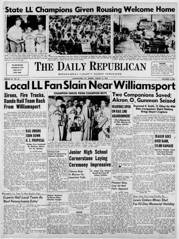 Background to WQED’s “A Season to Remember – The Baseball Boys of Mon City.” Monongahela Area’s 1952 Little League and 1954 Pony League teams.