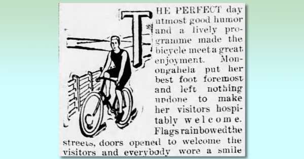 3000 people watch bicycle racing at the Monongahela race track in 1895