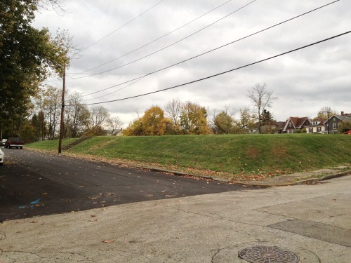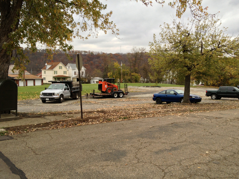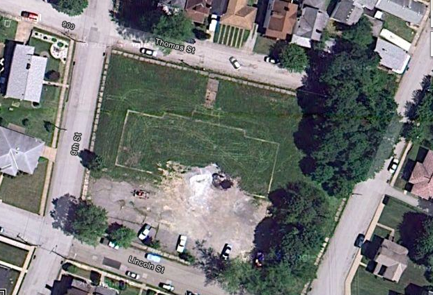 I wonder why the neighbors here never pressed the school district to remove the asphalt, plant grass and a few trees. I imagine it would improve property values if the lot looked somewhat like a park. Right now you see piles of gravel and asphalt with a dump truck and bobcat parked there. It would be a shame if the old high school area ends up looking like this.