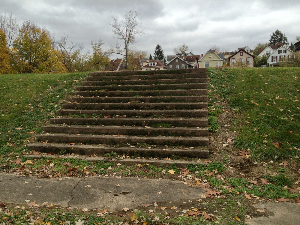Lincoln School Pin Tray showing steps with a dangerous rightward tilt. (click images for larger view)