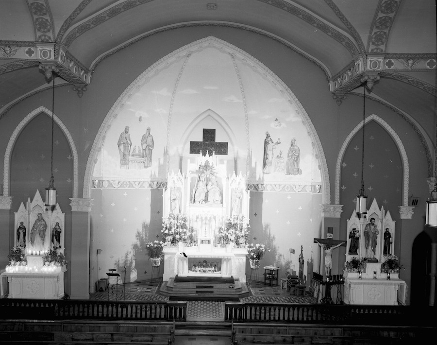 1960’s photo of the Holy Trinity Church interior with the pre-Vatican II style chancel.